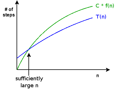 There exists some constant C such that C * f(n) >= T(n) for all sufficiently large values of n